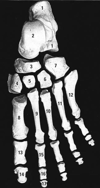 Tarsus: Greek for a wicker frame; the basic framework for the back of the foot.